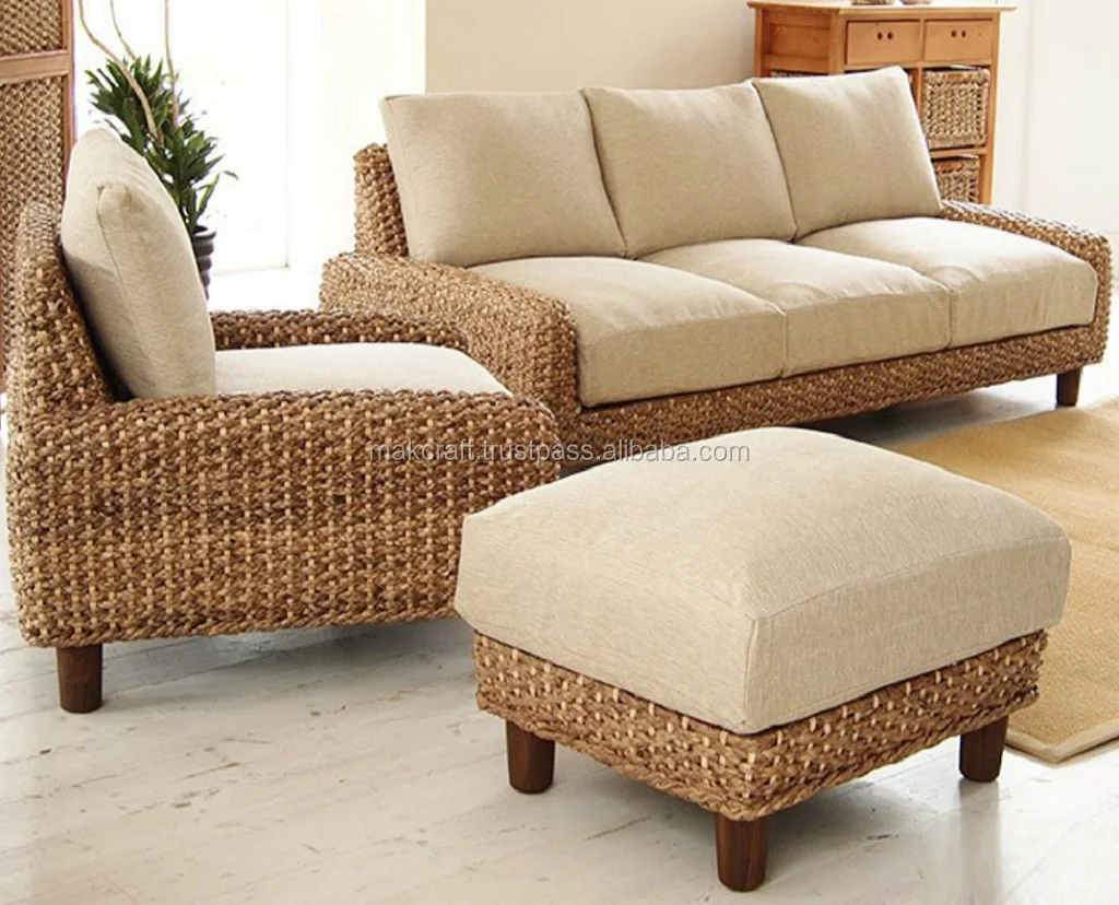 Hot Sale Water Hyacinth Indoor Rattan Living Room Wood Sofa Set Home Furniture Hand Woven By Wicker Hyacinth Wooden Frame Buy Water Hyacinth Sofa Set Wood Sofa Set Furniture Living Room Furniture